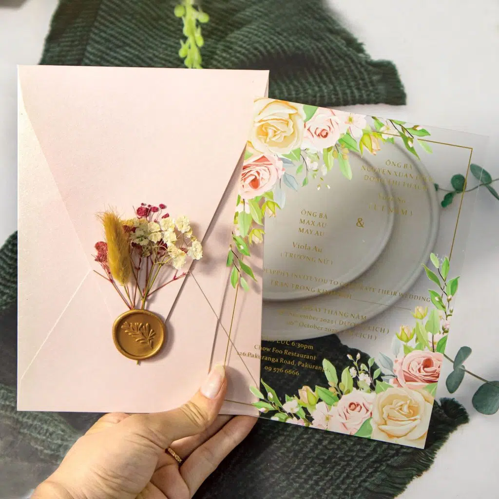 ✨ Akrylové svadobné oznámenie so sušenými kvietkami