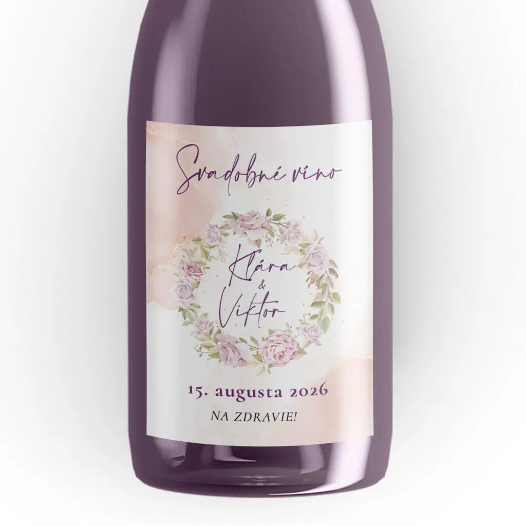 Etiketa na svadobné víno s ružami a akvarelom LSO2025 0417