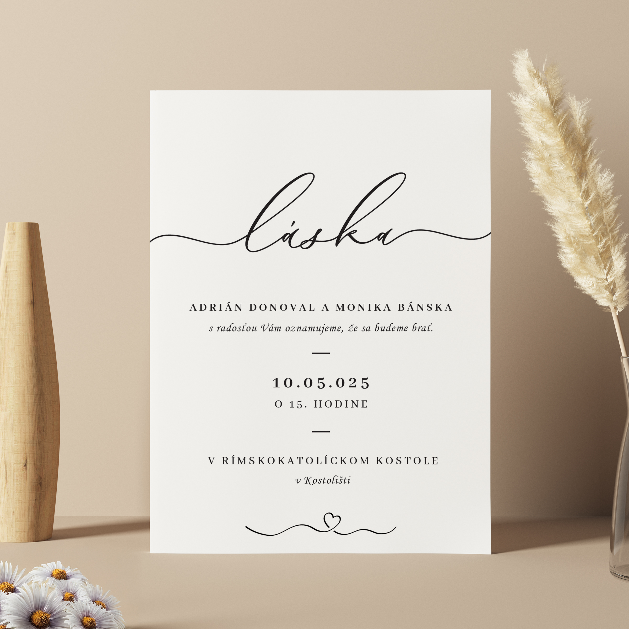 Jednoduché svadobné oznámenie v minimalistickom štýle.