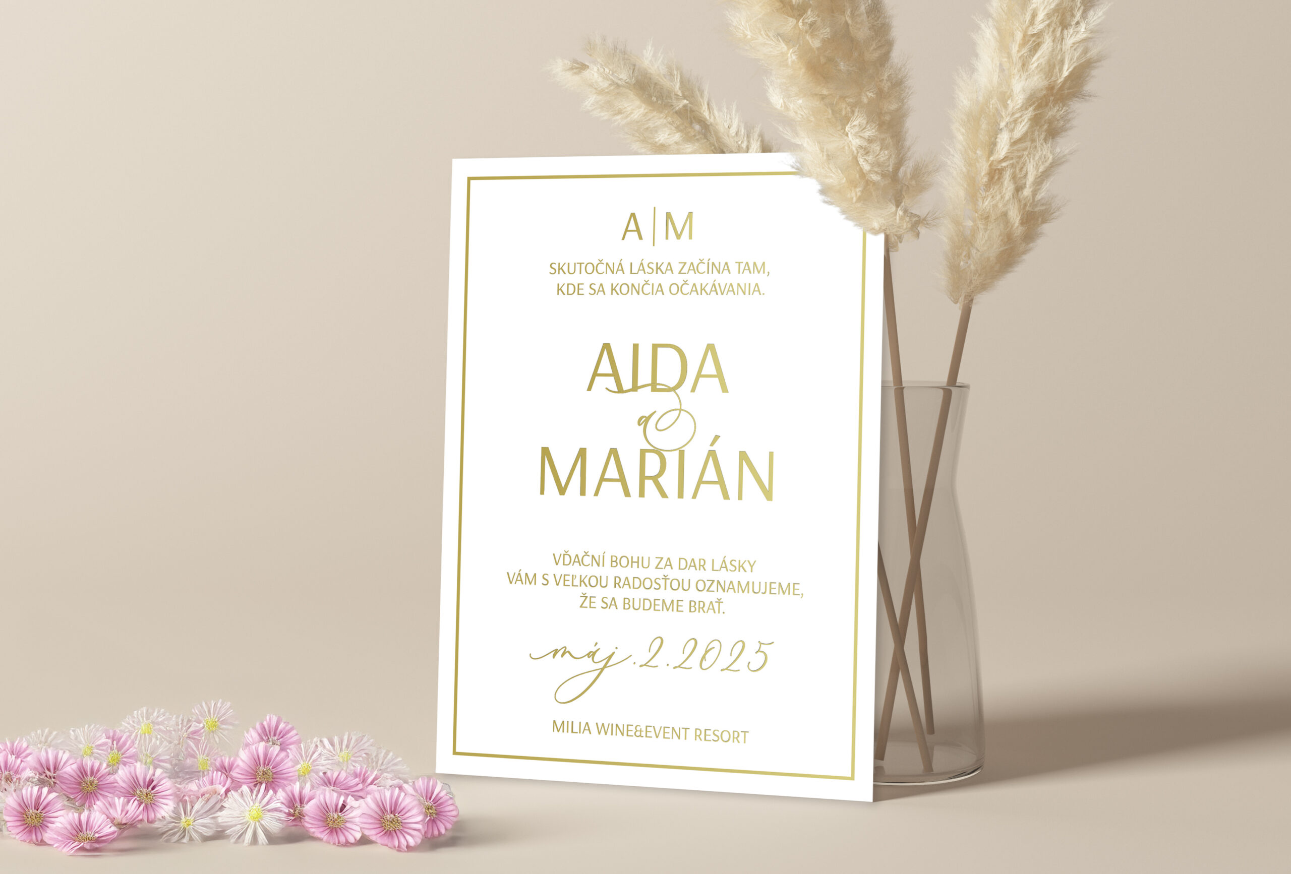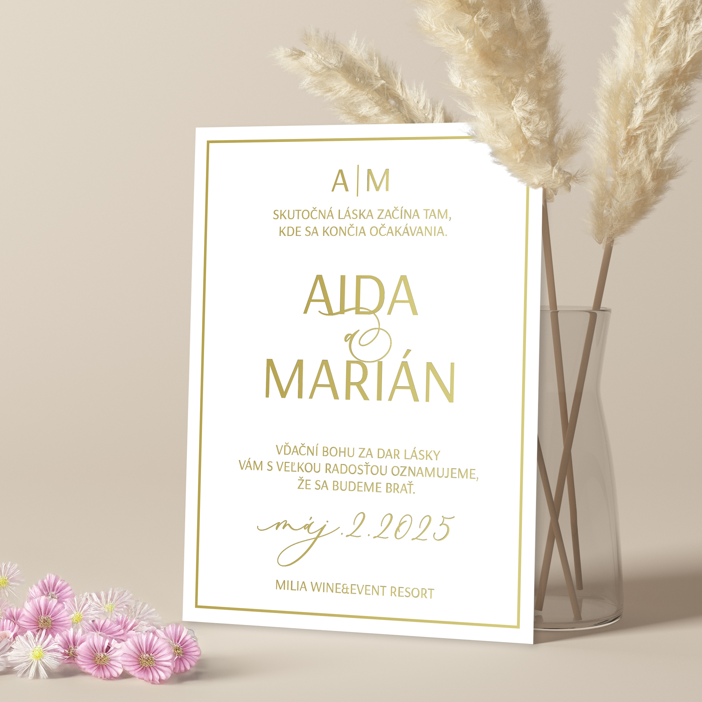 Krásne a luxusné svadobné oznámenia, s nádychom noblesy a pompéznosti. Svadobné oznámenia pre náročných. Spravte svoj veľký deň nezabudnuteľný aj noblesným oznámením na svadbu. Pri tlači používame technológiu termoražby metalickou fóliou GOLD, SILVER alebo ROSEGOLD.