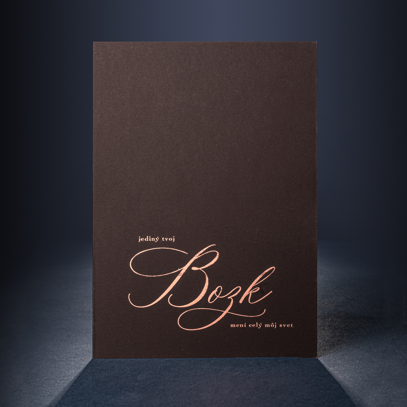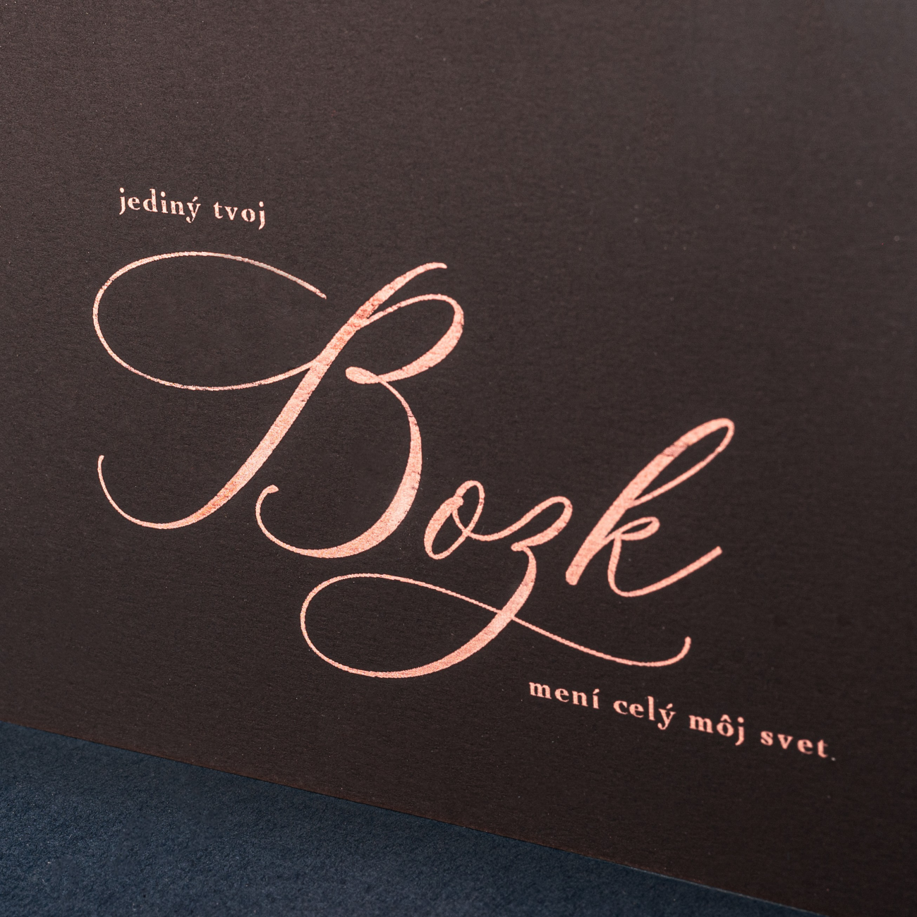 Krásne slová si zaslúžia krásny obal. Naše ručne rezané pohľadnice sú vyrobené z extrémne hladkého 280-gramového papiera typu black skin, na ktorom dominuje zlaté kaligrafické písmo razené termorazbou. Dokúpiť si môžte aj zlatú obálku s voskovou pečaťou a stojan, vďaka ktorému môžete pohľadnicu použiť aj ako štýlový dizajnový doplnok.