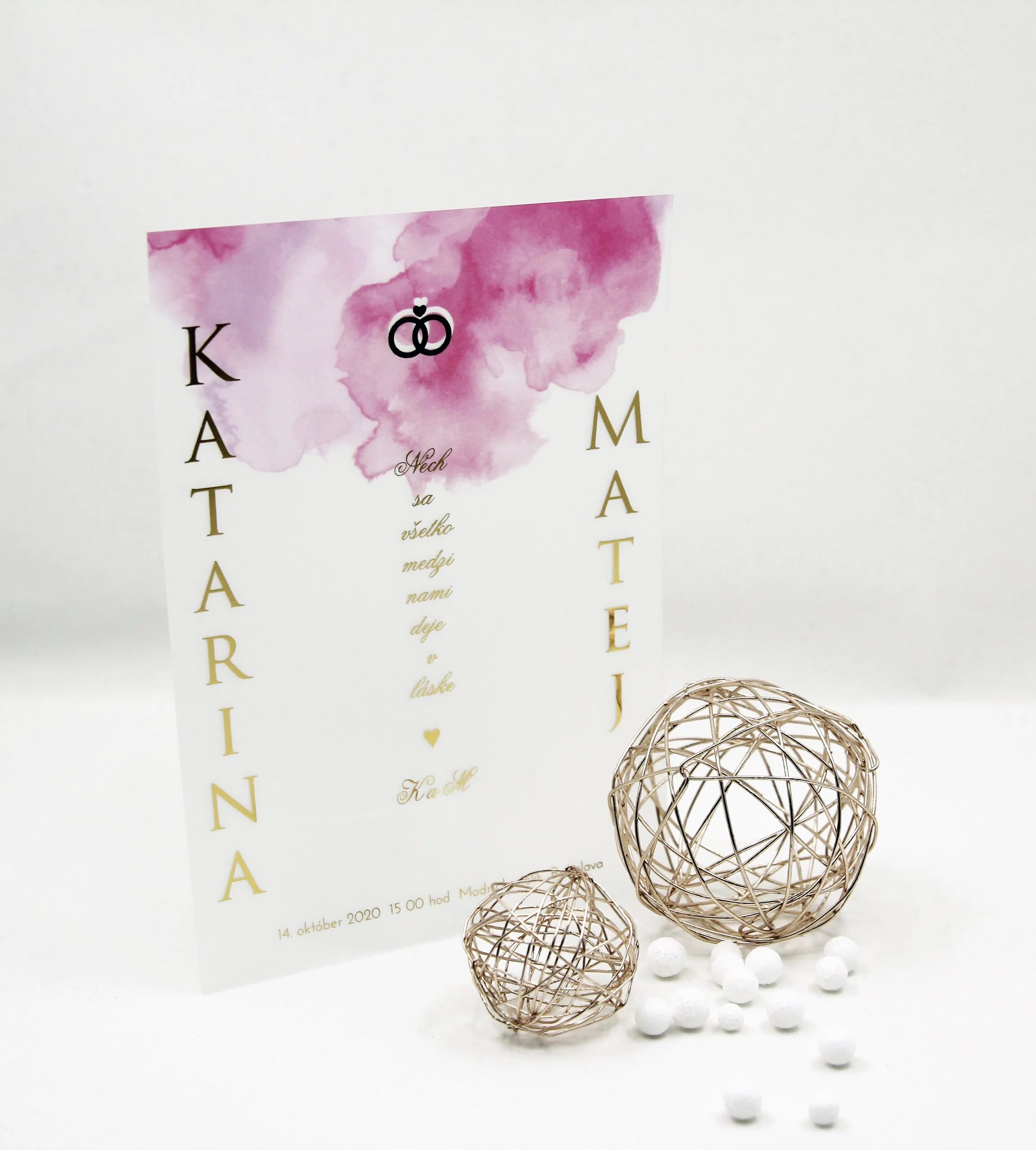 Luxusné svadobné oznámenie transparentné Classic Pink Atrament. Klasické, elegantné serif písmo so zaujímavým a pôsobivým rozložením. Výraz dizajnu je umocnený ružovým atramentom. Svadobné oznámenie je tlačené metalickou fóliou na elegantnom mliečnom plaste. Podmanivá krása.Svadobné oznámenie formát 10×14 cm, pozvánku máte v tom istom štýle, ako aj všetky ďalšie tlačoviny. Tlačené na mliečnom plaste. Vieme zmeniť farby aj formát na požiadanie.