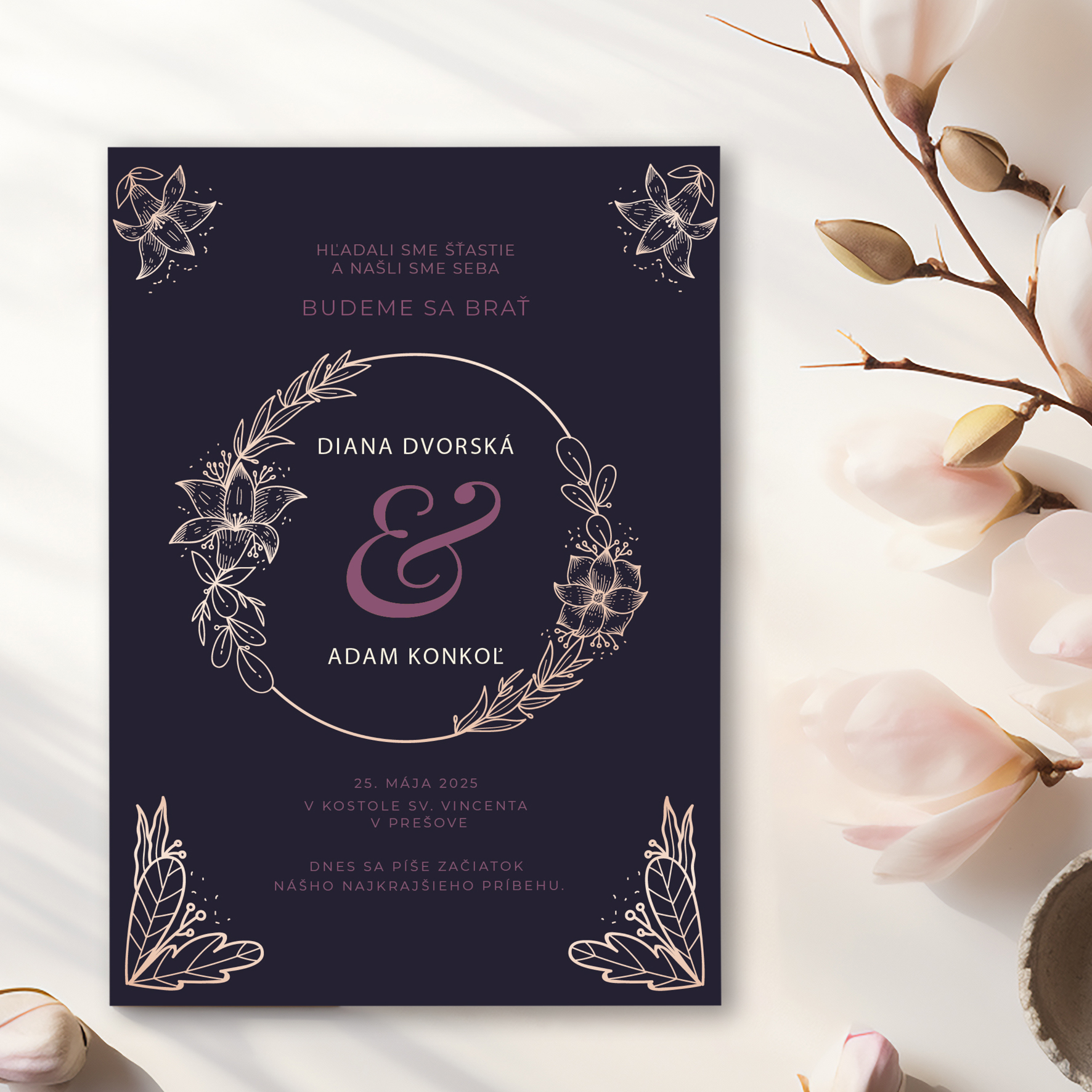Krásne luxusné svadobné oznámenie