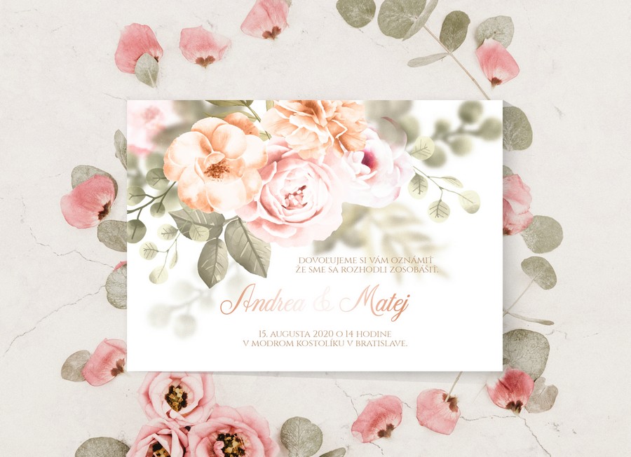 • Luxusné svadobné oznámenie s ružovou dekoráciou LSO2025_0414