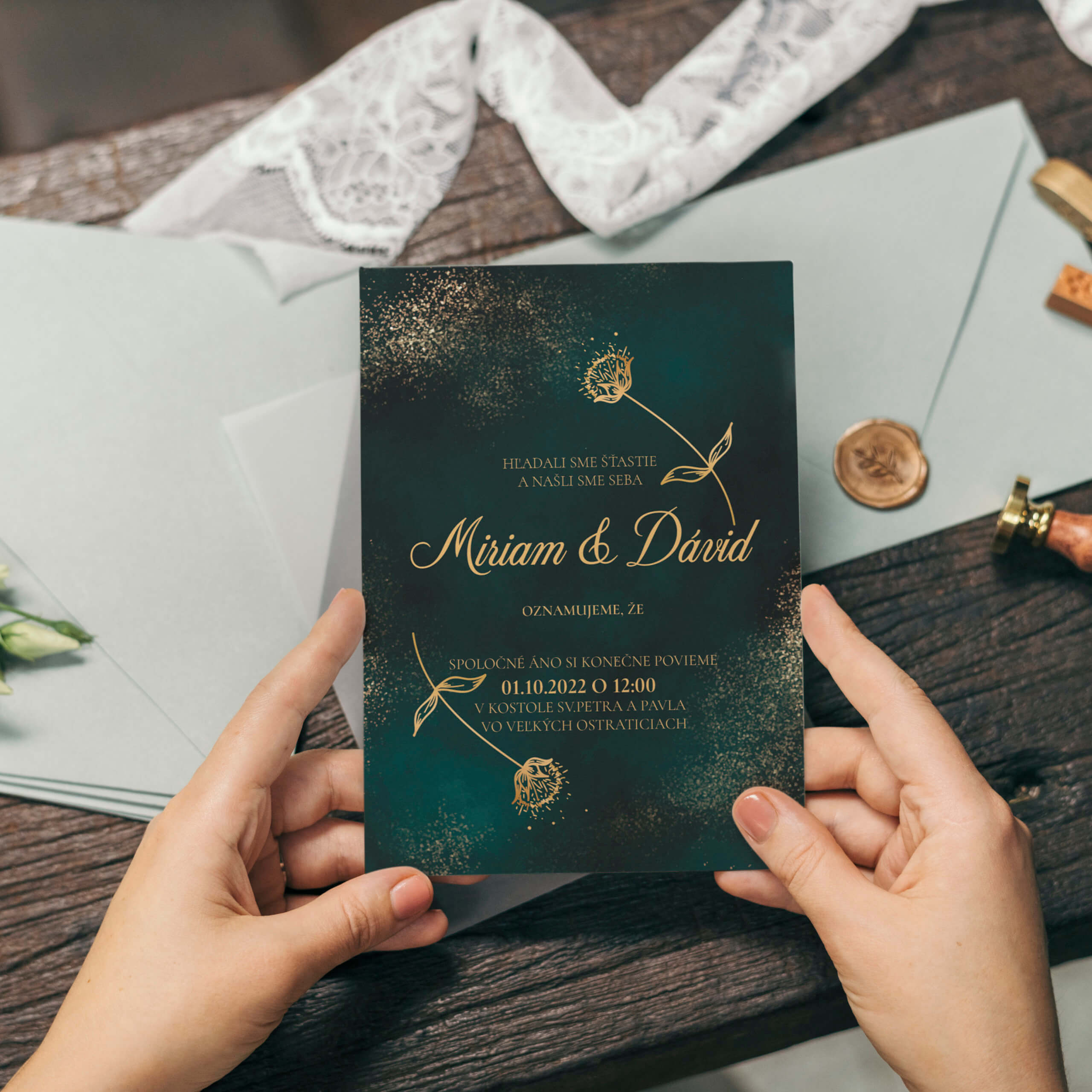 Tieto svadobné oznámenia sú tu pre všetkých, ktorí majú radi eleganciu a jemnosť. Potrpíte si v každodennom živote na kvalitné materiály, doprajete si prepych, ale stále sa pohybujete v medziach vkusu? Chcete tento štýl zachovať aj vo vašich svadobných oznámeniach? Potom je naša kolekcia luxusných variácii zhotovená práve pre vás. Vyberte si kráľovské svadobné oznámenie, ktorým celému svetu oznámite Váš šťastný deň.