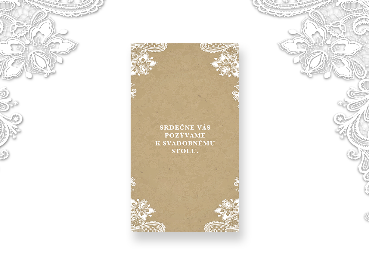 • Pozvánka k svadobnému stolu je v rozmere 90 x 50 mm /tlač na papier/