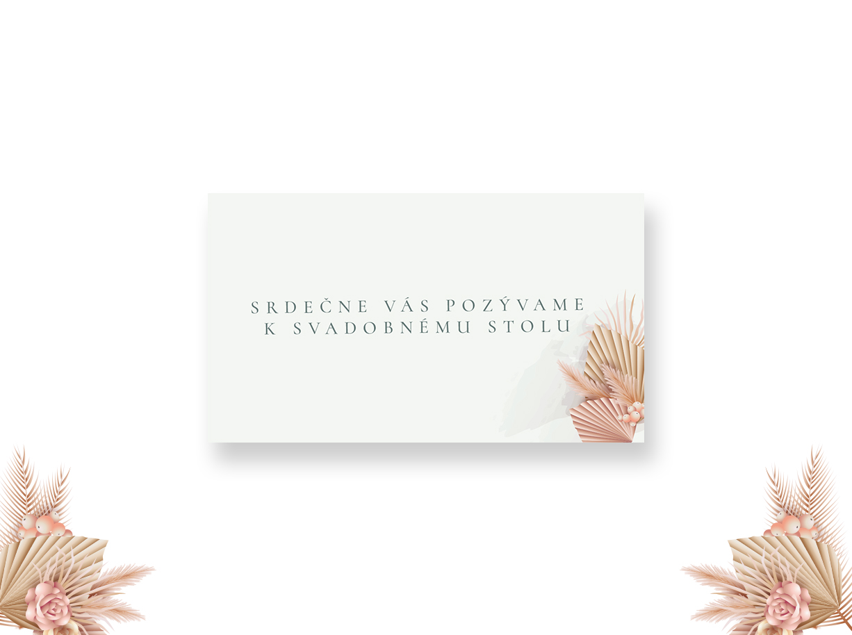 • Pozvánka k svadobnému stolu je v rozmere 90 x 50 mm /tlač na papier/