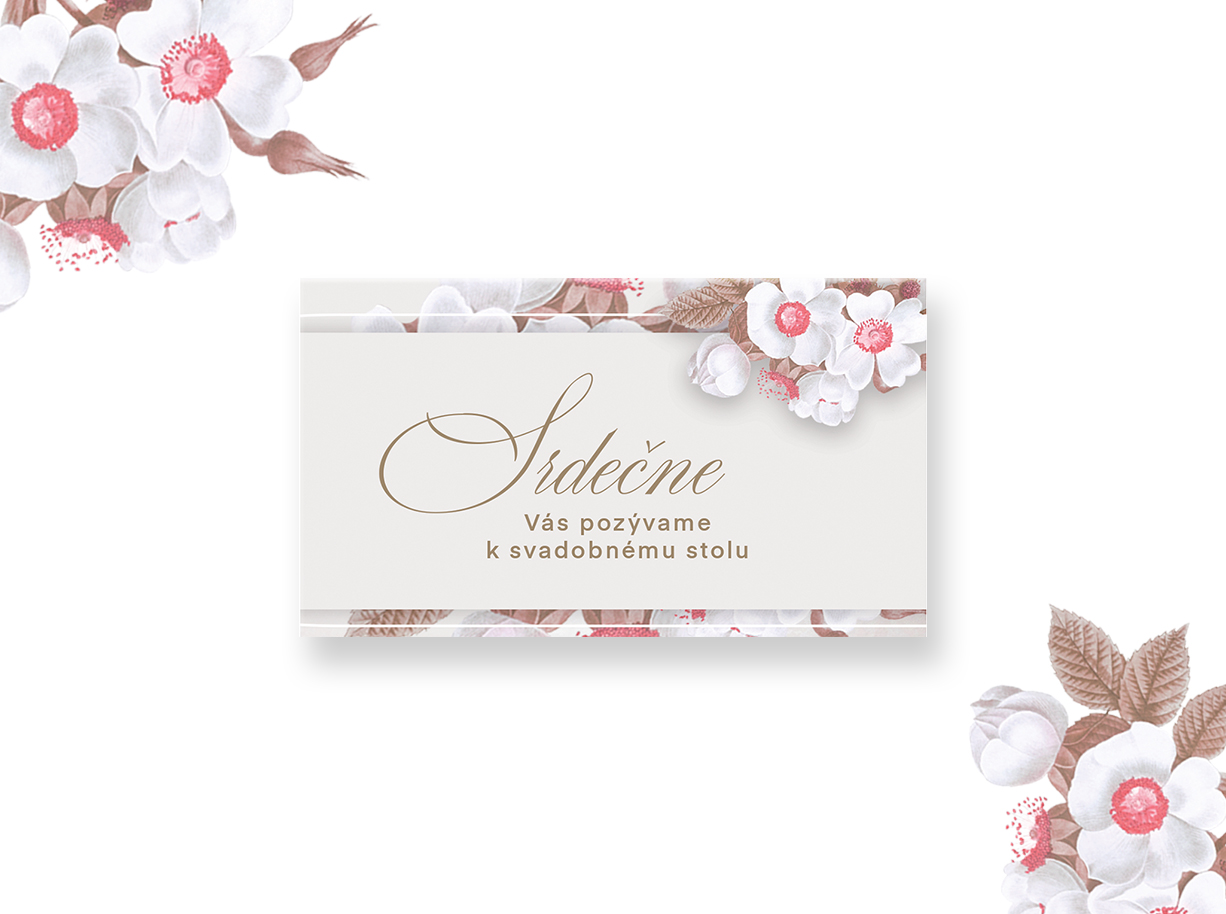 • Pozvánka k svadobnému stolu je v rozmere 90 x 50 mm /tlač na papier/