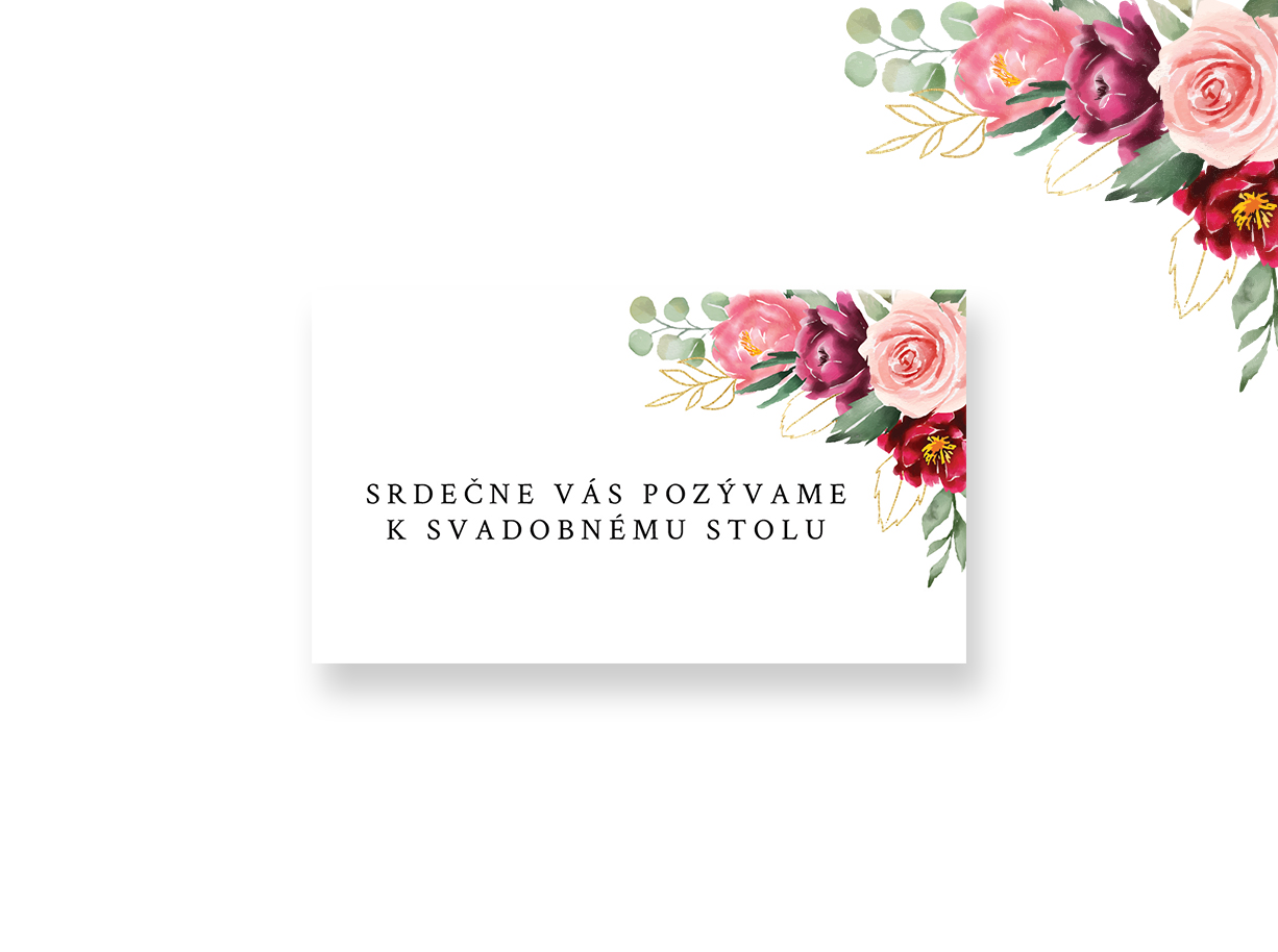• Pozvánka k svadobnému stolu je v rozmere 90 x 50 mm /tlač na papier/