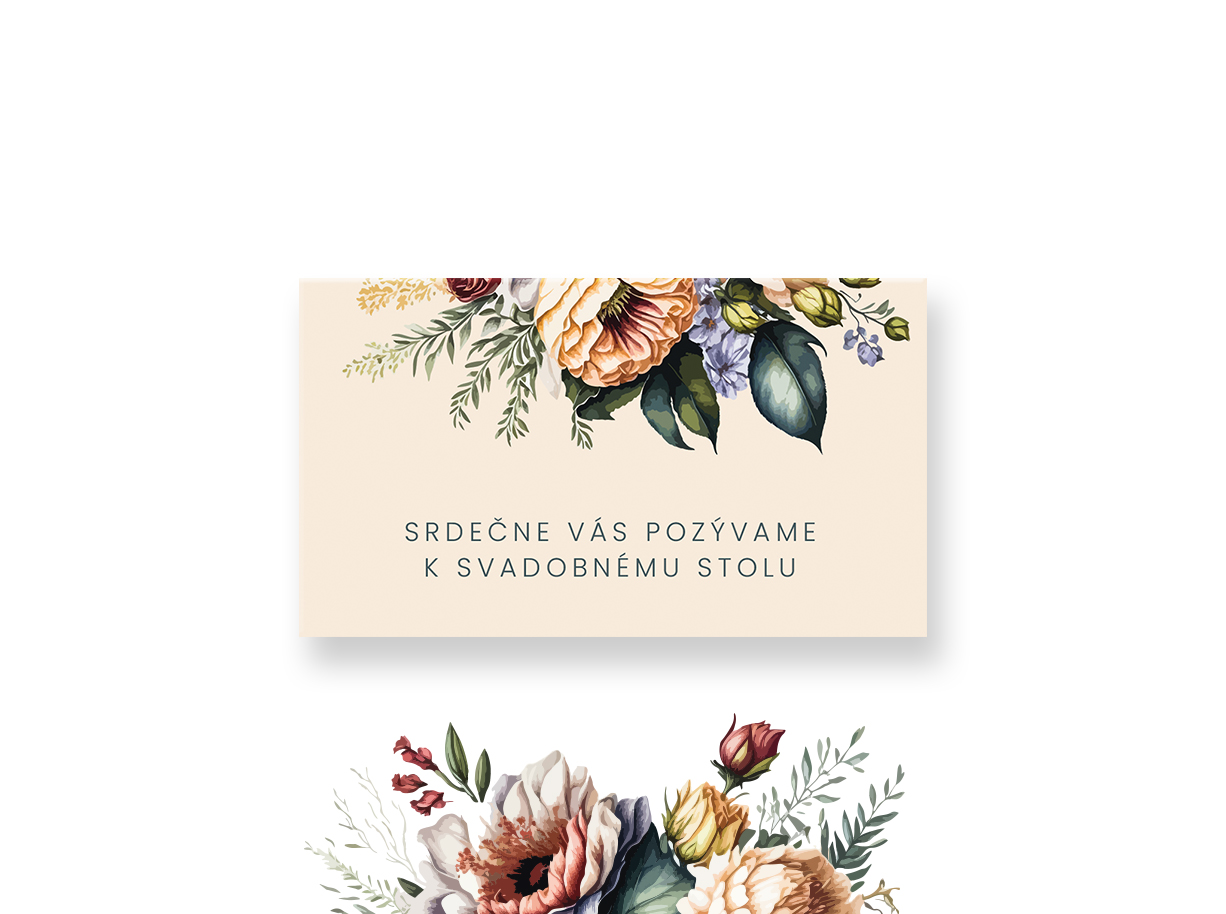 • Pozvánka k svadobnému stolu je v rozmere 90 x 50 mm /tlač na papier/