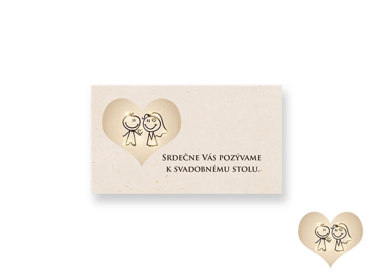 • Pozvánka k svadobnému stolu je v rozmere 90 x 50 mm /tlač na papier/