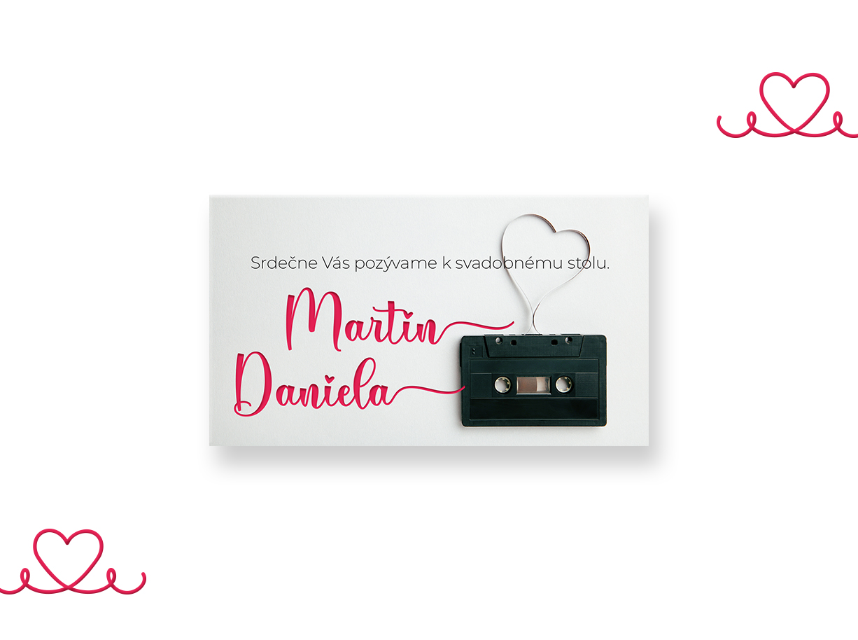 • Pozvánka k svadobnému stolu je v rozmere 90 x 50 mm /tlač na papier/