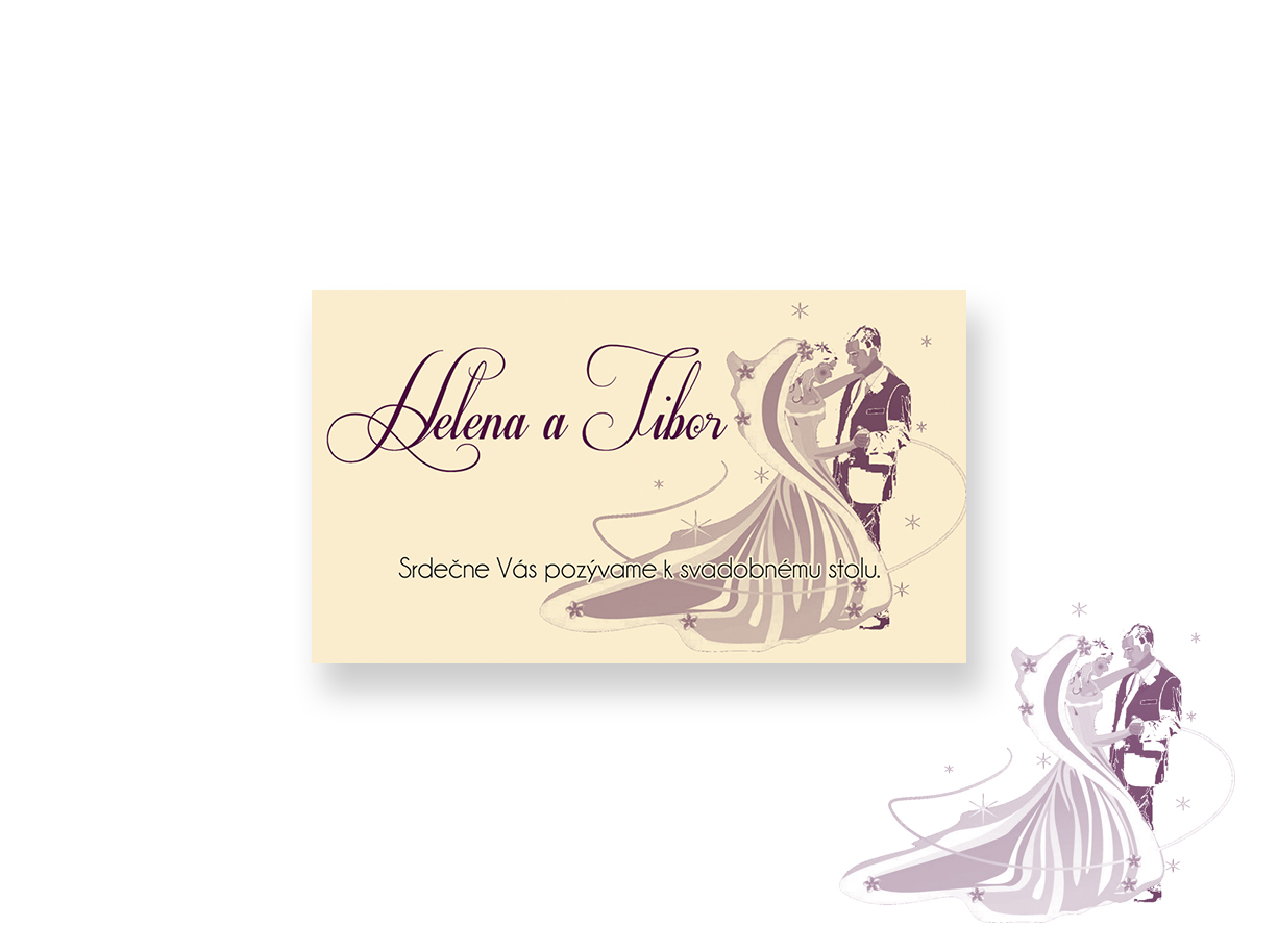 • Pozvánka k svadobnému stolu je v rozmere 90 x 50 mm /tlač na papier/