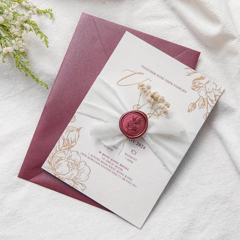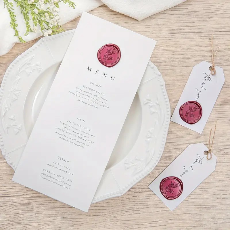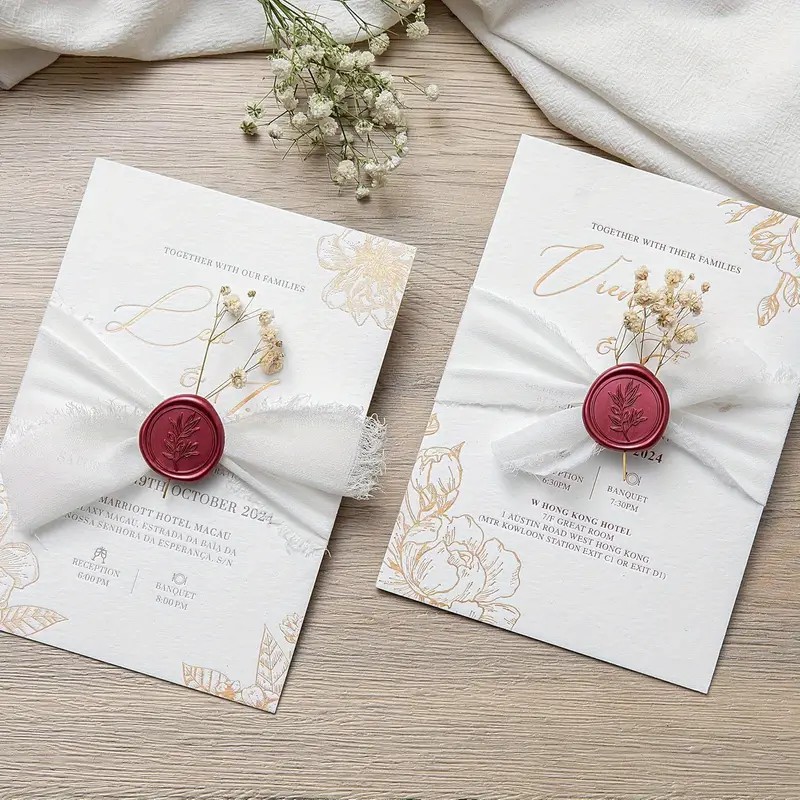 • Prispôsobenie dizajnu: Vyberte si z rôznych farieb vosku a vzorov pečatí, aby dokonale ladili s vaším štýlom. Ponúkame aj možnosť vlastného návrhu pečate.