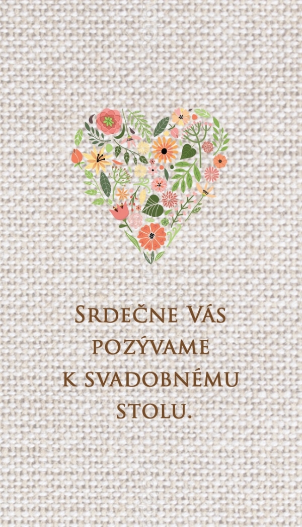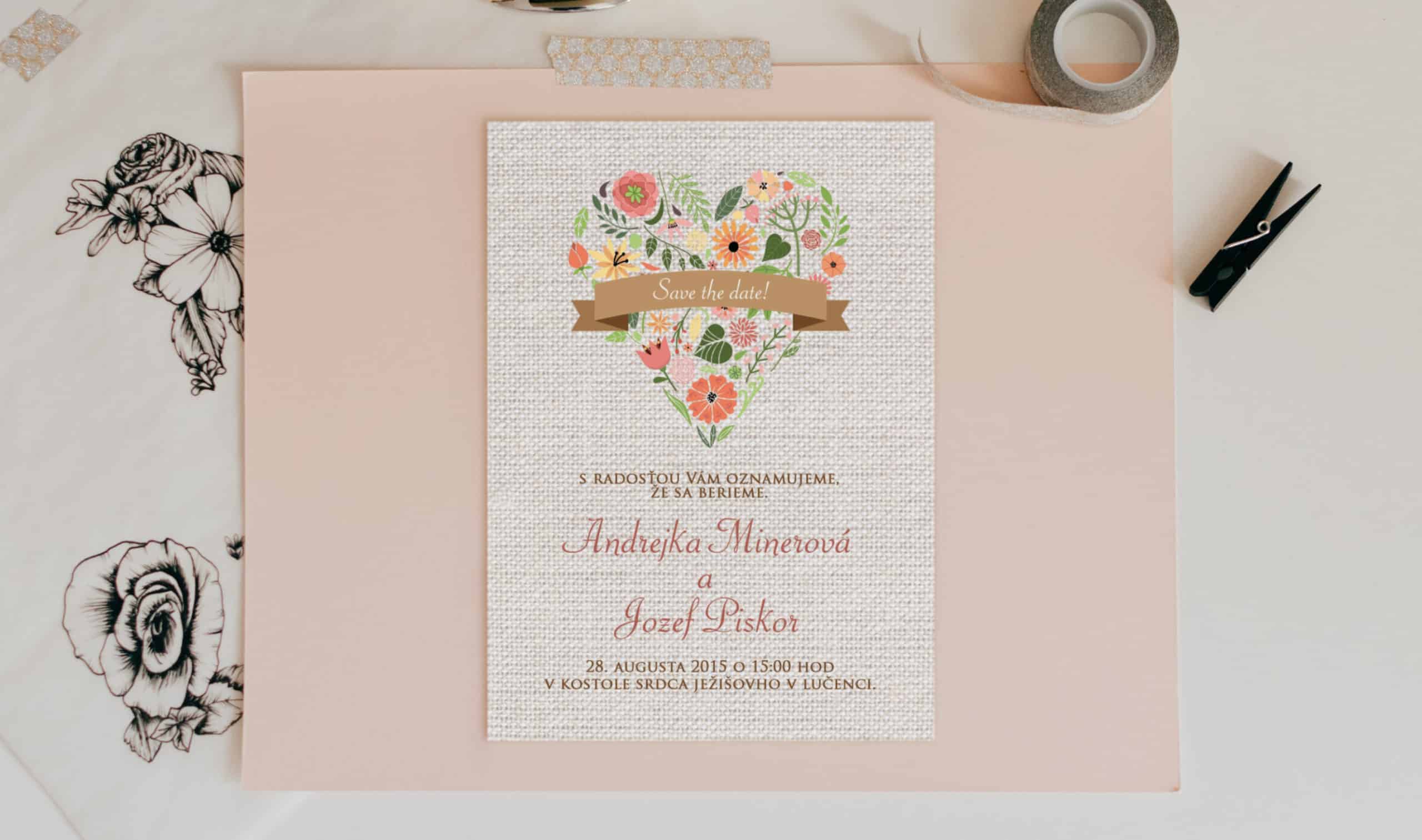 Veľmi pekné svadobné oznámenie pre vnímavú nevestu so zmyslom pre jemnú krásu. Oznámenie zapôsobí najmä pestrofarebným kvetinovým srdiečkom.Svadobné oznámenie formát A6, pozvánku máte v tom istom štýle, ako aj všetky ďalšie tlačoviny. Tlačené na 250g papieri. Potlač je jednostranná, ale je možné potlačiť aj zadnú stranu. Vieme zmeniť farby aj formát na požiadanie.