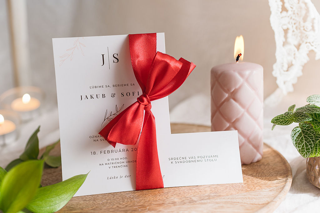 Vyberte si svadobné oznámenie s mašľou a doprajte svojim hosťom prvý silný zážitok z vašej svadby. Stačí pár klikov a o zvyšok sa postaráme my.
