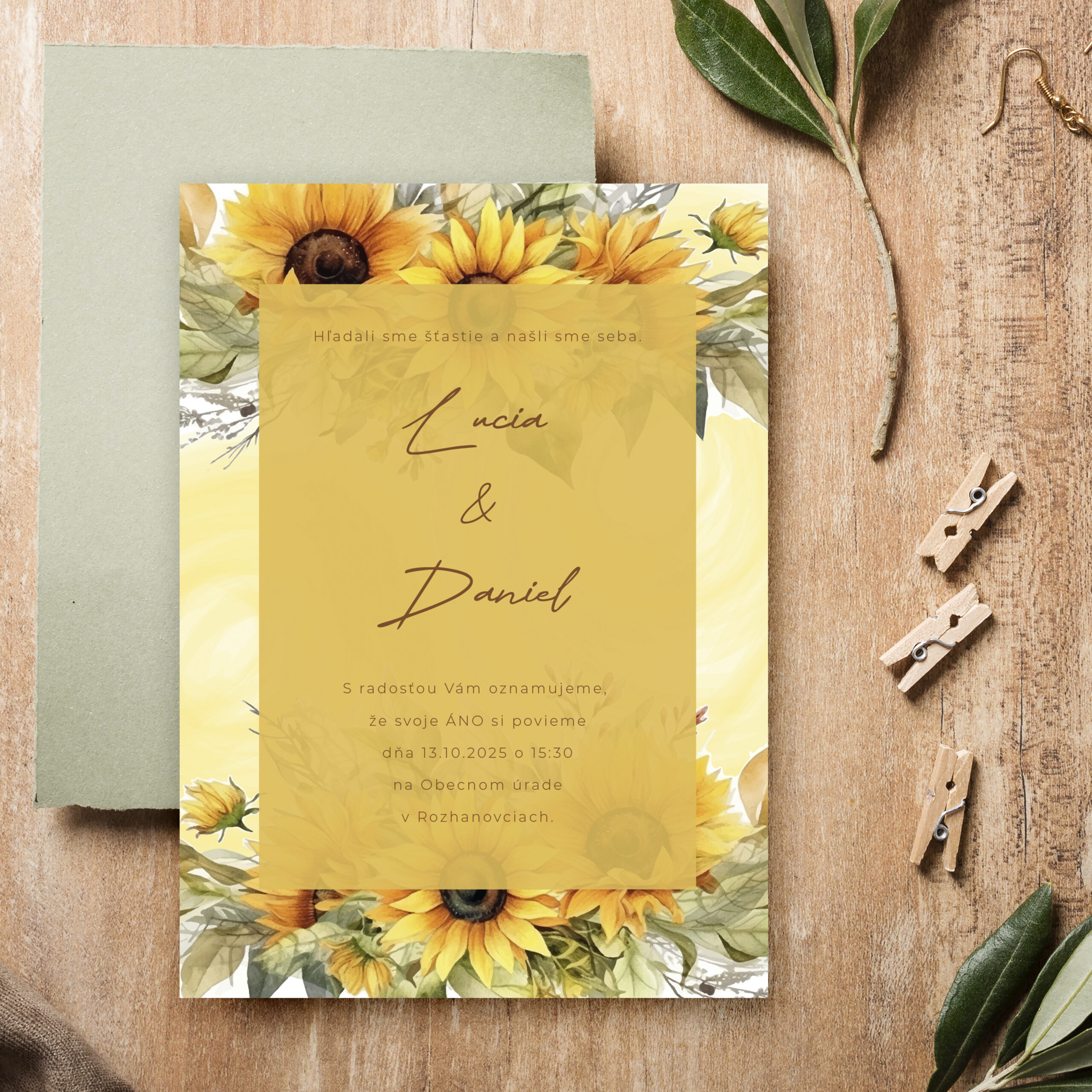 Svadobné oznámenie so slnečnicami