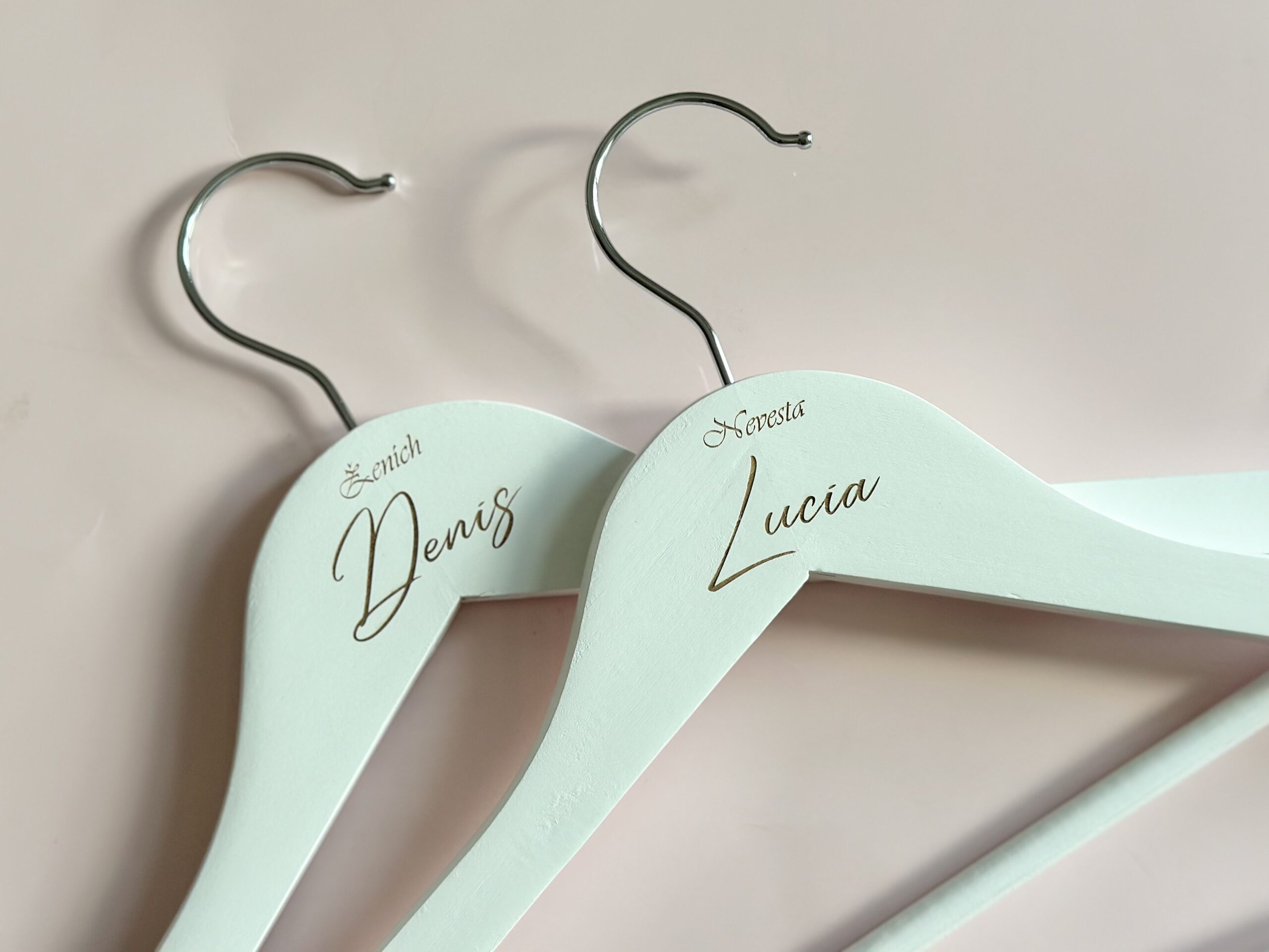 Svadobné vešiaky s gravírovaním – Luxusný doplnok pre váš veľký deň
