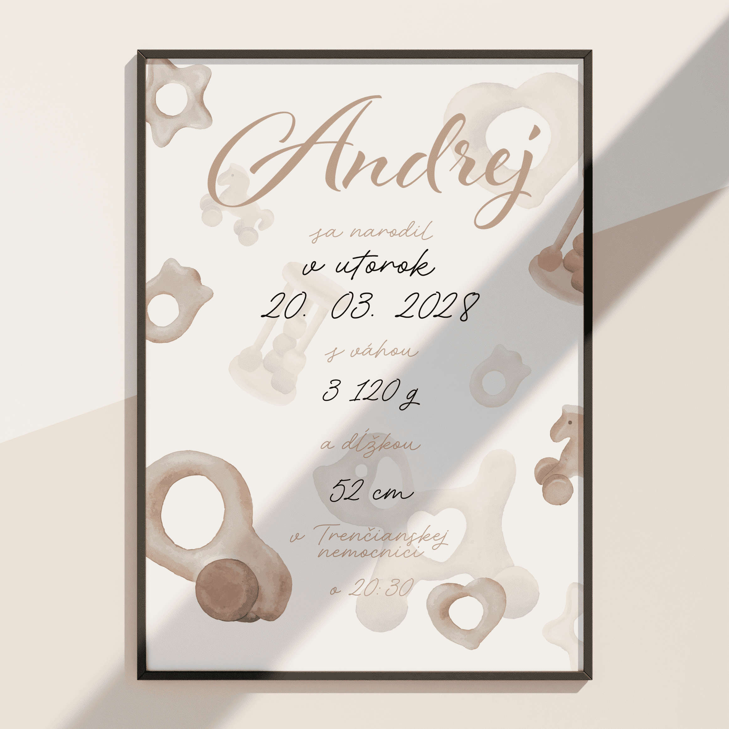 Narodenie dieťaťa je okamih, na ktorý nezabudnete celý život. Aby ste mali tieto vzácne spomienky uchované navždy, pripravíme pre vás originálnu pamätnú tabuľku o narodení. Obsahuje všetky údaje o vašom bábätku a vďaka krásnej grafike sa stane jedinečnou dekoráciou aj darčekom.