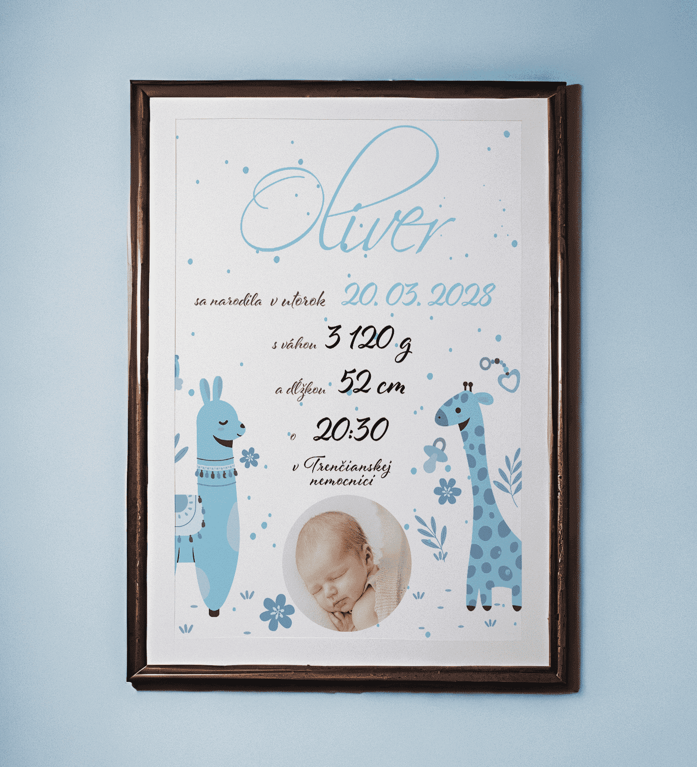 Narodenie dieťaťa je okamih, na ktorý nezabudnete celý život. Aby ste mali tieto vzácne spomienky uchované navždy, pripravíme pre vás originálnu pamätnú tabuľku o narodení. Obsahuje všetky údaje o vašom bábätku a vďaka krásnej grafike sa stane jedinečnou dekoráciou aj darčekom.