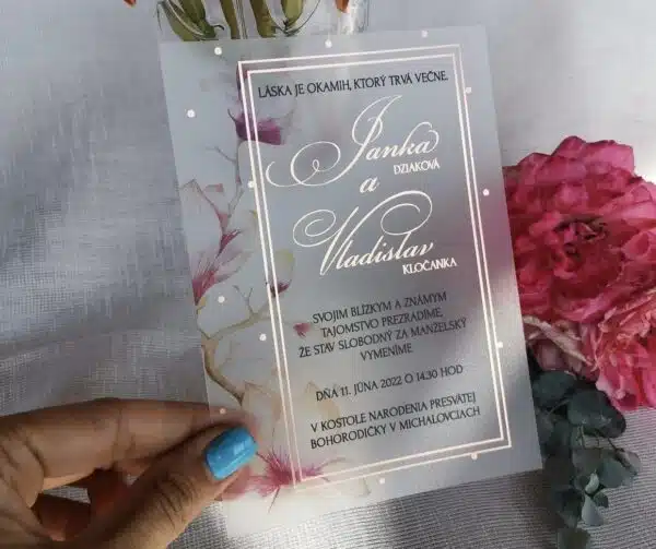 Viac LUXUSNÝCH svadobných oznámení NA MLIEČNOM PLASTE nájdeš v kolekcii TRANSPARENTNÉ SVADOBNÉ OZNÁMENIA
