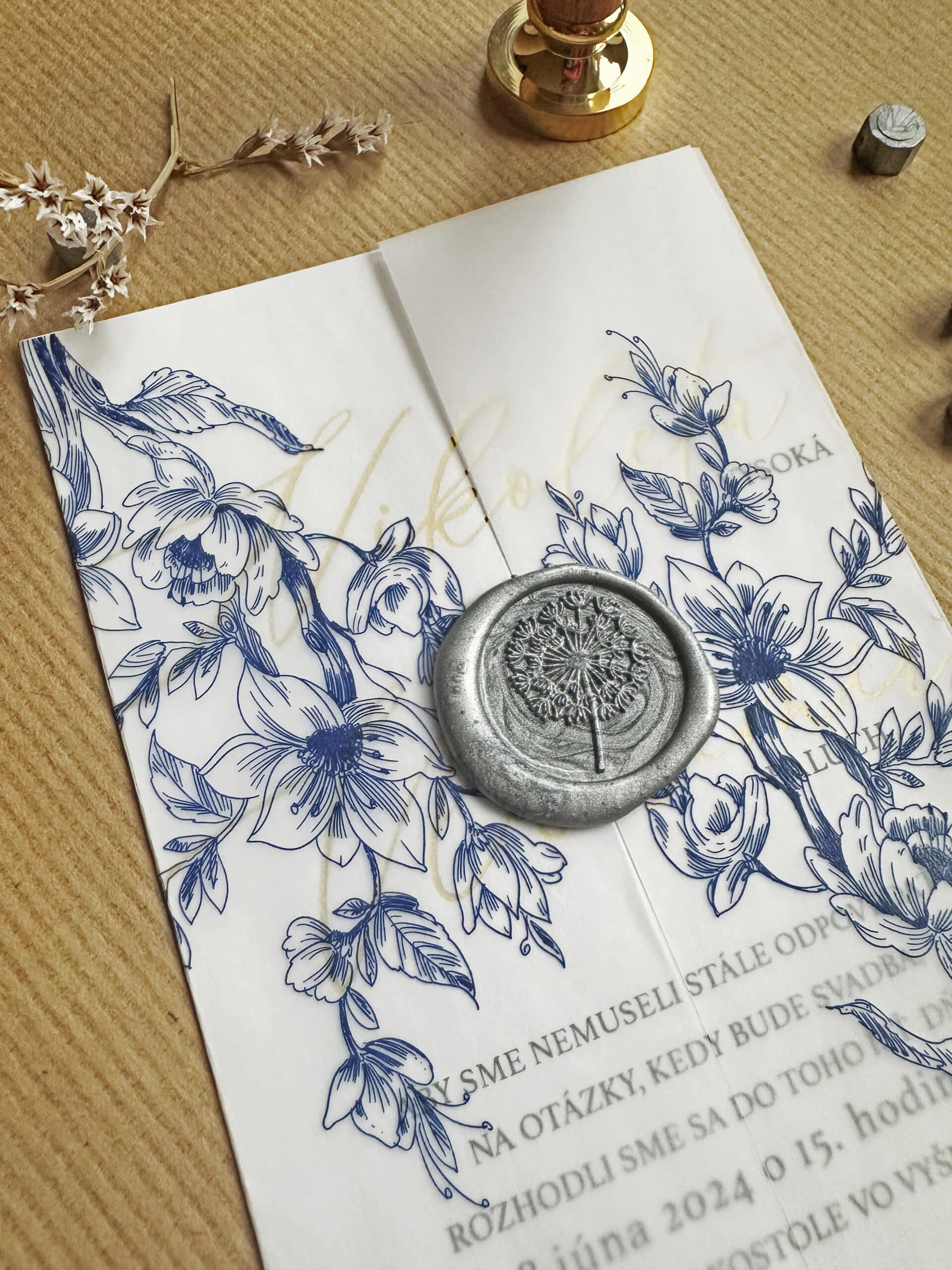 Transparentný obal na svadobné oznámenie Blue rose