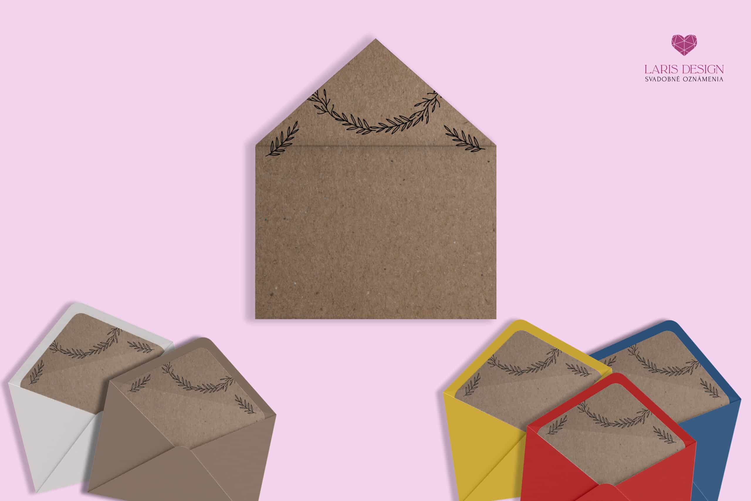 Farby obálok sú ilustračné. Informujte sa, ktoré obálky z našej ponuky sú aktuálne vhodné pre vkladanie potlačenej vložky do obálok. Ak si budete kupovať obálky sami, informujte sa o rozmeroch obálok, aby ste si boli istí, že vám rozmerovo sadnú. Rozmery vnútornej potlače do svadobných obálok vieme na požiadanie prispôsobiť.