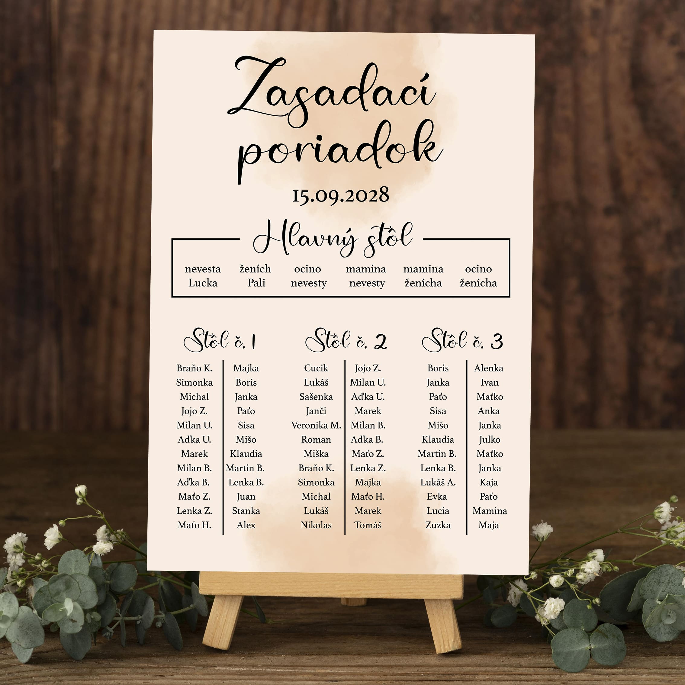 • Prispôsobenie podľa vašich predstáv: Naša služba vám umožňuje pridať vlastné detaily, ako sú mená hostí, čísla stolov, a dokonca aj špeciálne označenia pre VIP alebo rodinu.