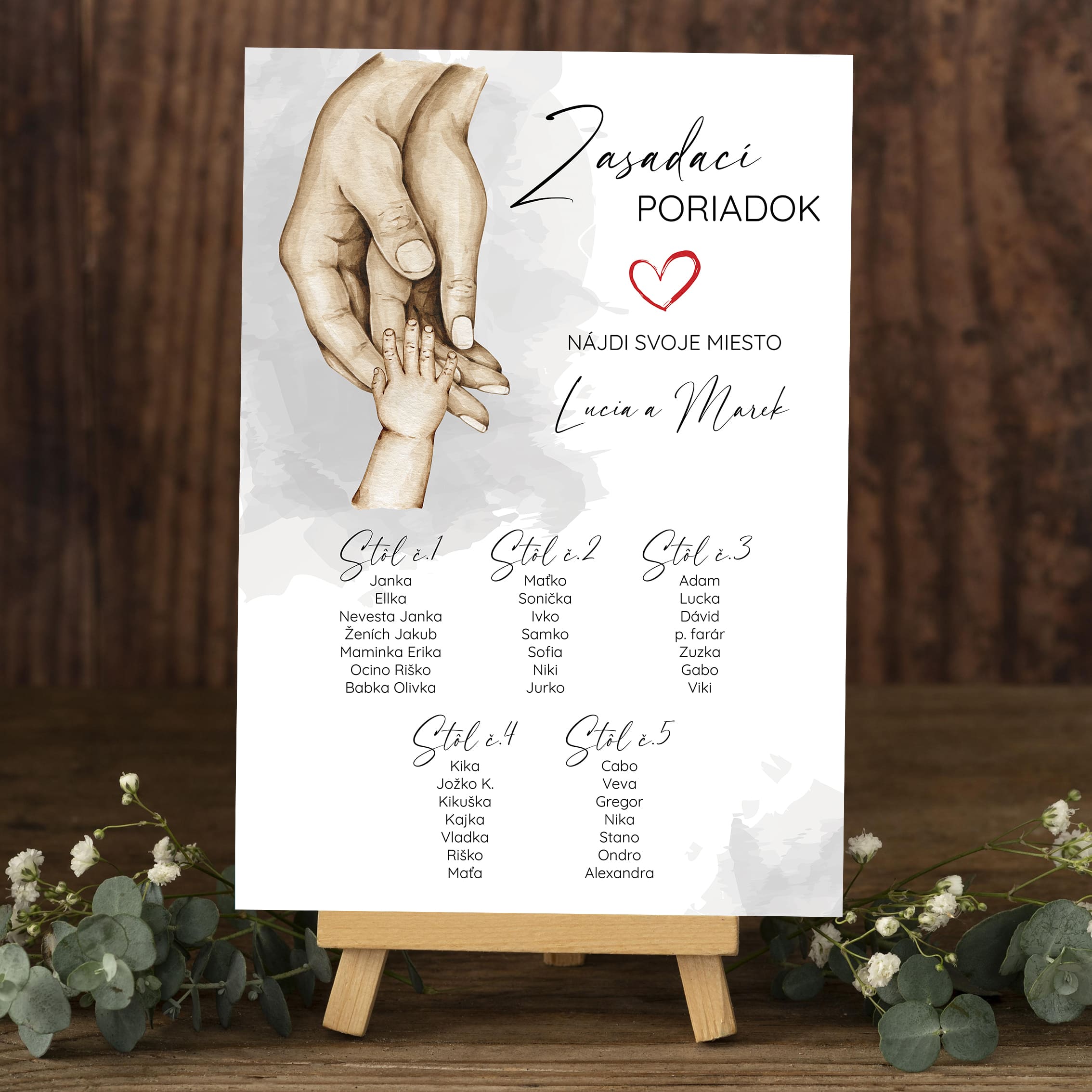 - Elegantný dizajn: Naša ponuka zahŕňa moderné a štýlové motívy, ktoré ľahko zapadnú do rôznych svadobných tém. Môžete si vybrať z viacerých dizajnov alebo si prispôsobiť zasadací poriadok podľa vlastného vkusu.