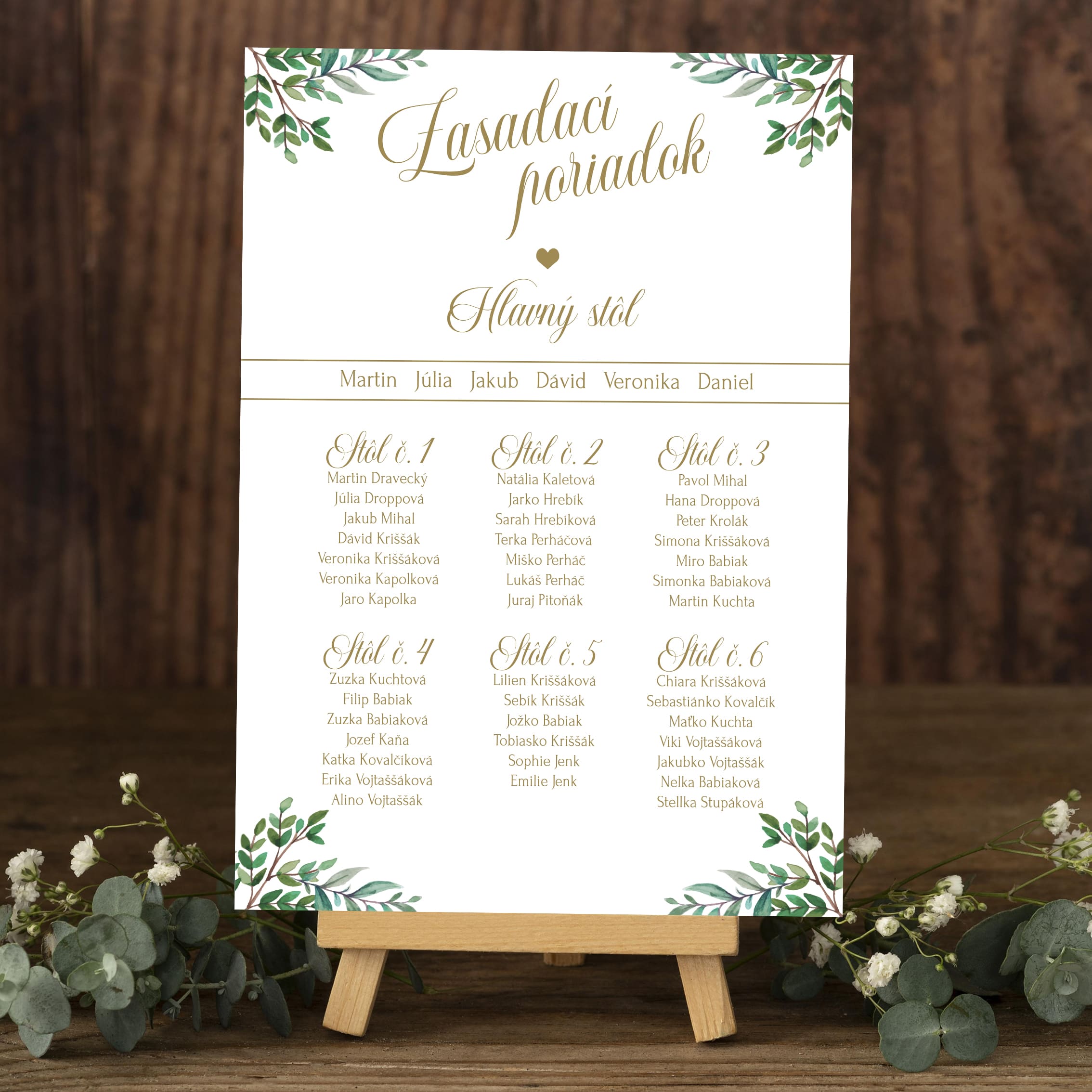 Zasadací poriadok na svadbu Greenery Skip to main content