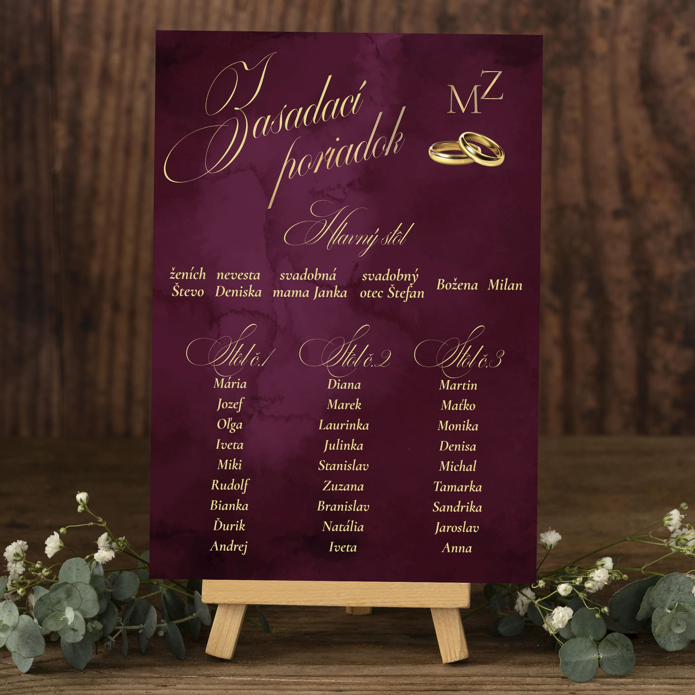 Zasadací poriadok na svadbu je nevyhnutným doplnkom každej svadobnej oslavy, ktorý vašim hosťom poskytne jasný prehľad o tom, kde majú svoje miesto. Uľahčite si organizáciu a zabezpečte, že všetci hostia sa budú cítiť vítaní a pohodlne.