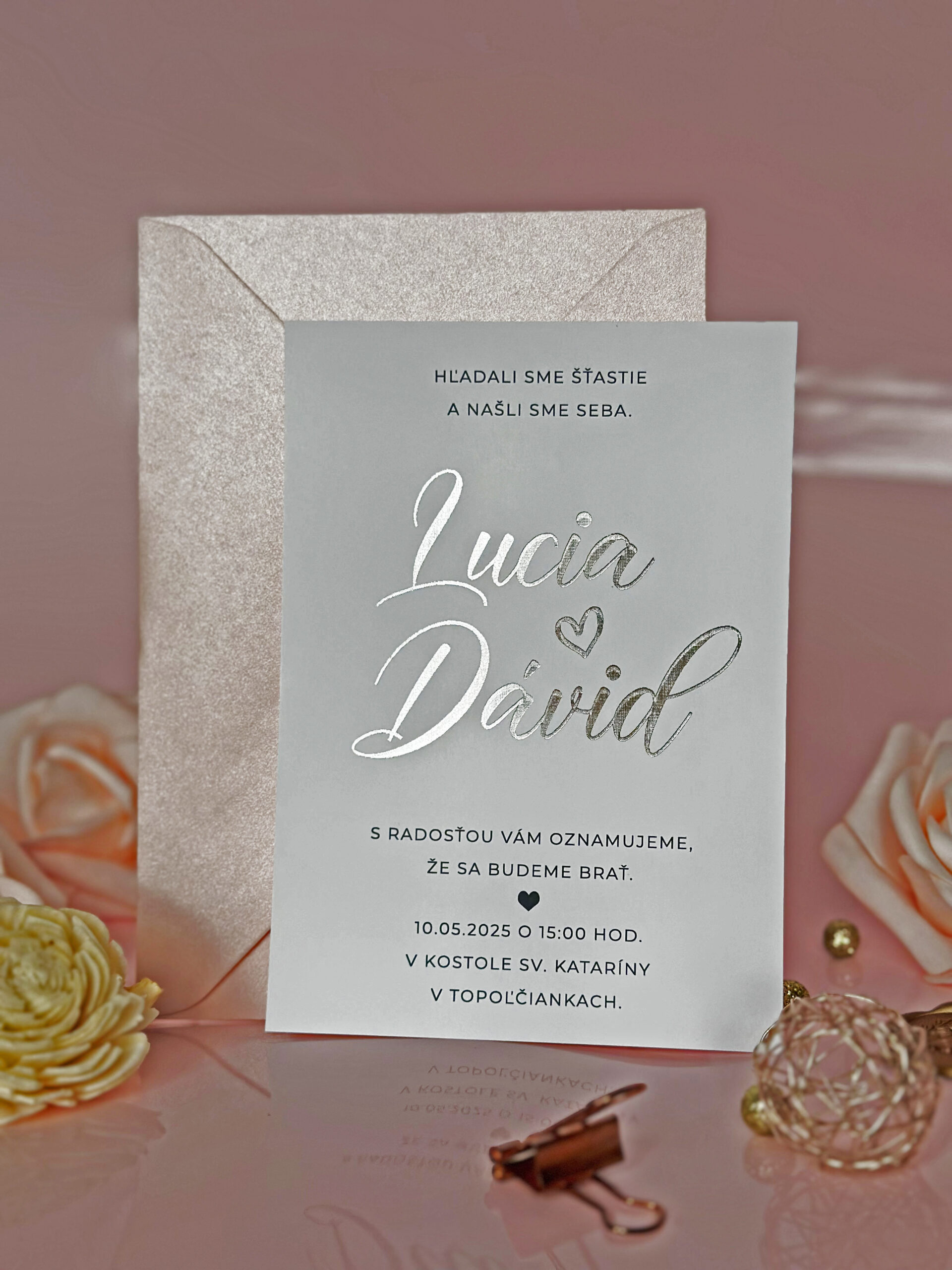 Viac LUXUSNÝCH a METALICKÝCH svadobných oznámení aj NA MLIEČNOM PLASTE nájdeš v kolekcii TRANSPARENTNÉ SVADOBNÉ OZNÁMENIA