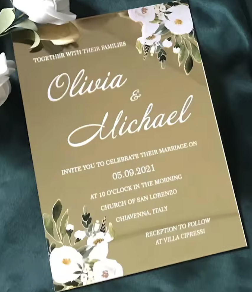 Zrkadlové akrylové svadobné oznámenie Kvietky Skip to main content